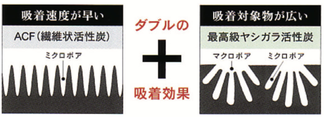 | ろ過の種類 | 繊維状活性炭・椰子殻活性炭 不織布・鉱石パウダー |
